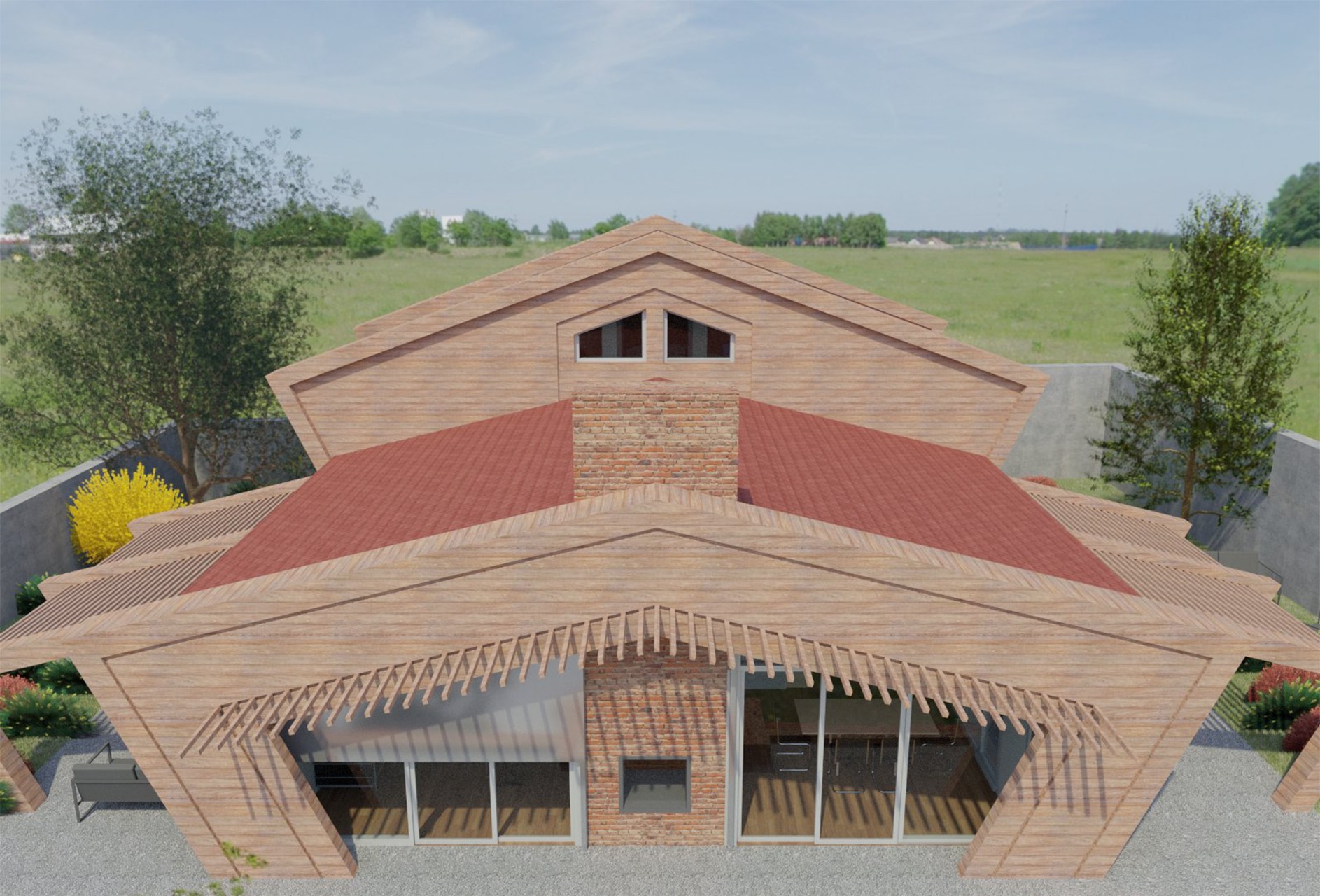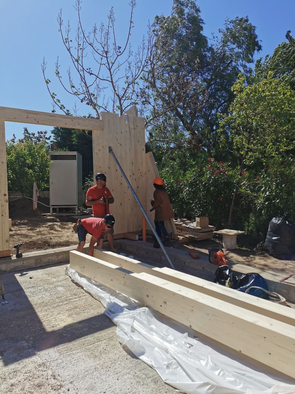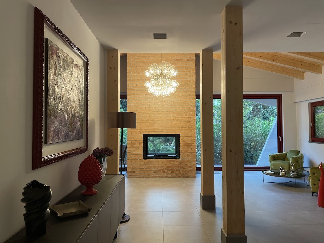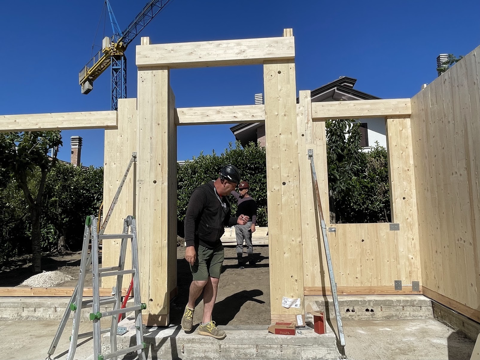 L’edificio è realizzato con una struttura portante di pannelli prefabbricati di legno lamellare incrociato e stratificato (X-LAM). Tali pannelli sono formati da più strati di legno lamellare sovrapposti e incollati l'uno sull'altro in modo tale che le fibre di ogni singolo strato risultano ruotate di 90° rispetto a quelle degli strati adiacenti, conferendo così ai pannelli un’ottima resistenza flessionale e al taglio in entrambe le direzioni del suo piano.