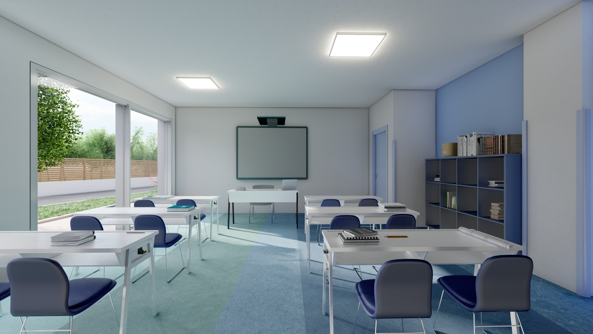 Gli ambienti principali hanno le aperture esterne rivolte a Sud, a diretto contatto con la vegetazione prevista negli spazi esterni e nelle corti interne che separano le due ali dei corpi di fabbrica destinati alla didattica.